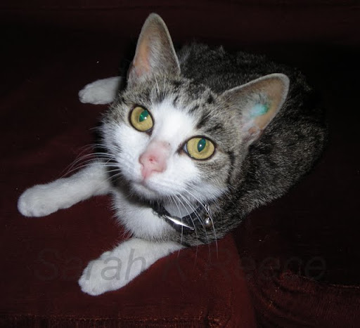 The bip on her nose is healing fine and her tummy is looking excellent with no sign of infection or pain. She is just the sweetest, gentlest little critter. Already toilet trained too! Just have to discourage the sharpening of the claws on my rug. 🙂