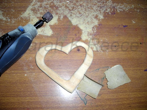 I like it just as much as I thought I would! Here’s my heart kite handle, being shaped by further sanding. I used the coarse then fine sander on the Dremel, then finished with extra fine grain sand paper by hand.