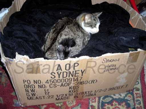 She likes sleeping in a cardboard box of skirts I keep under my bed, it must feel dark and safe there.