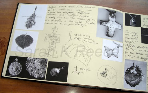 So, now I move onto the next piece which must be my own design, may be riveted but not soldered, must be a pendant, and must contain at least one polished surface. We are also being assessed on a studio journal so I’ve been putting some time into that: