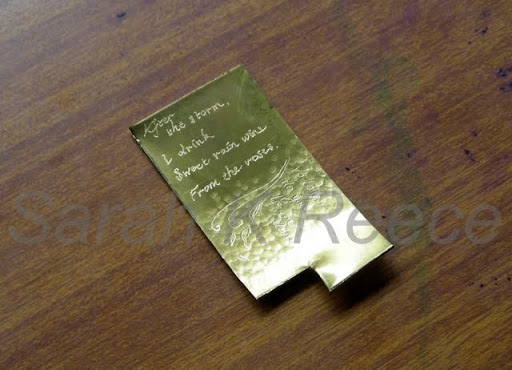 Pretty happy with that! Next, seeing how it turns out using a couple of different backgrounds as contrast. Here is engraving on a hammered background: