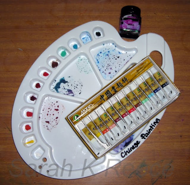 Always heart warming to have new art supplies. And, in case you’re interested, here’s my lovely Chinese painting pallette, all set up: