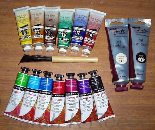 Look at all the gorgeous colours! Yum yum, can’t wait to start a new oil painting now. Here they are together with my original collection, as you can see it’s just about doubled.