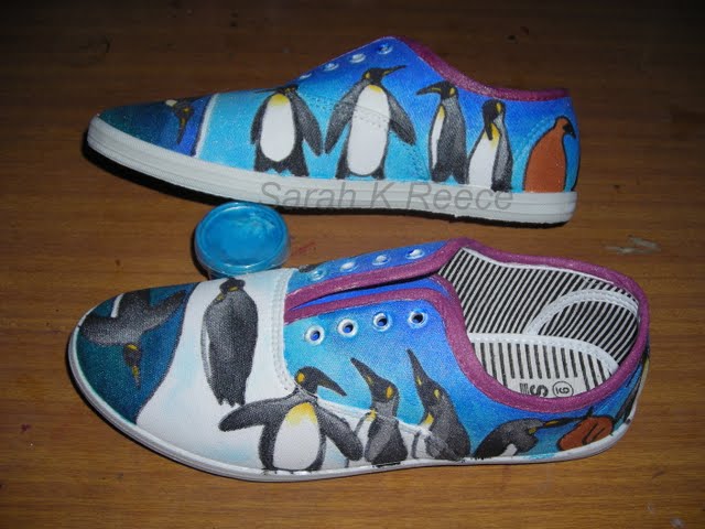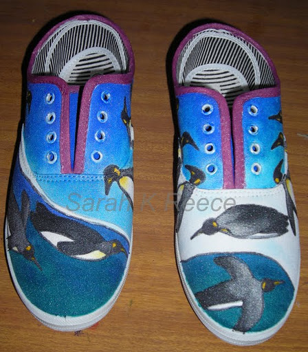 I’ve painted a new pair of shoes for an order. The brief was ‘penguins’, and when I asked about colours I was told ‘penguin coloured’. So here are my penguin-coloured awesome penguins of awesomeness. I hope they will be enjoyed by their new owners!