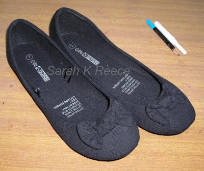 I quite liked the design just on the toe area, so I stopped there to check with my sister, who these belong to. But she likes the idea of lily pads wrapping around the whole shoe, so I’ll finish them off tonight and bake them when it’s cooler in the evening. (see them finished here)
