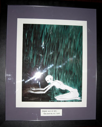 I didn’t need to look at the paintings or hang them anywhere. I found them profoundly disturbing and hated the sight of them. Once they were finished I would put them out of sight and only after a lot of time had passed would I take them out and have a look at them. I found just being able to get this feeling or fear or image out of my own head and safely recorded somewhere else was often enough to stop the nightmare.