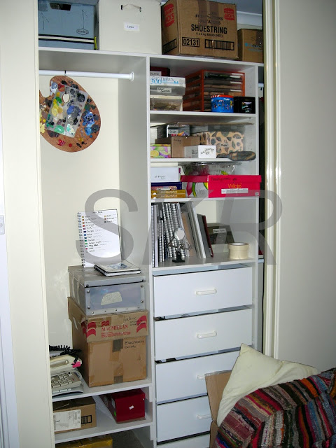I’m using the built-in wardrobe are to stash more supplies, particularly those that are sensitive to light exposure such as rubber stamps and paint: