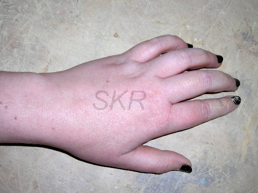 Here it is (bottom right) on the drying shelf with other student’s hands: