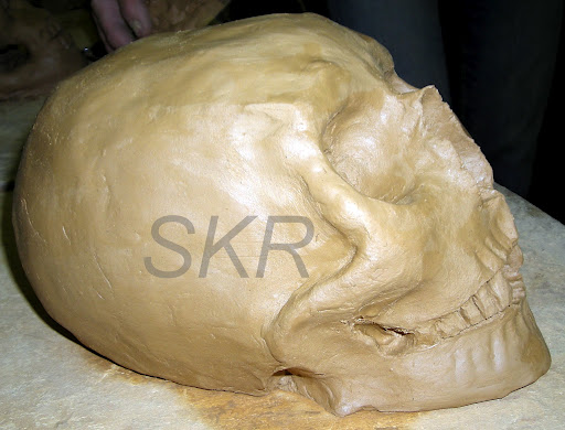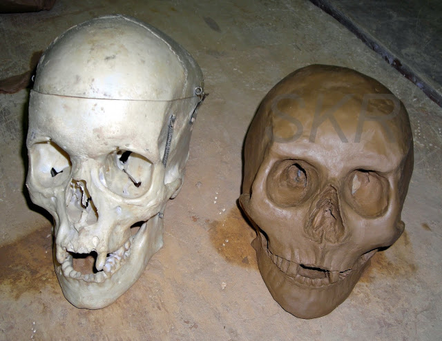 Yes, that is a real human skull we had to model from. Apparently this one was from India. It had a very narrow face and fine features.