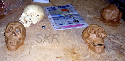 You can see here the my skull shape is all wrong, what’s happened is that the clay we were using was incredibly soft and as we were working with it it was slumping down. So everyone’s skull has ended up with almost no forehead and eye sockets looking up at the roof!