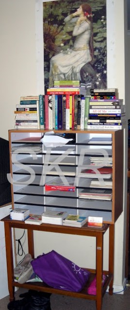 Here is my DI library, on top of my paper file, on top of the lovely new table I found on the side of the road this week. I’m very pleased to get this lot off the ground and out of the dust zone.