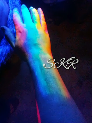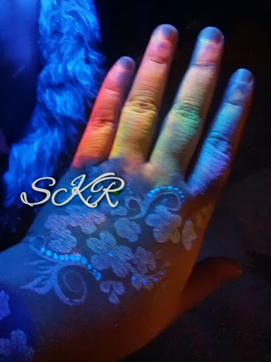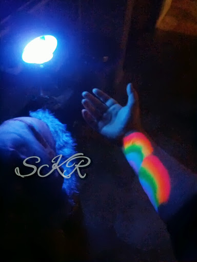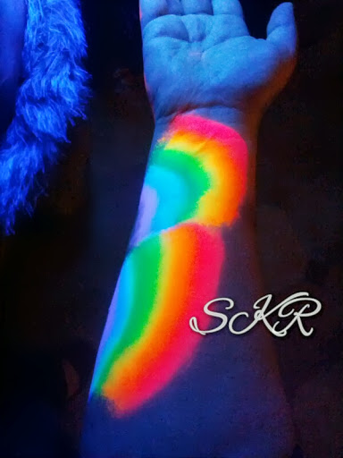 Whoooooooo! I just went and bought a desk lamp and a UV bulb… this is the painting I did earlier shown under black light!