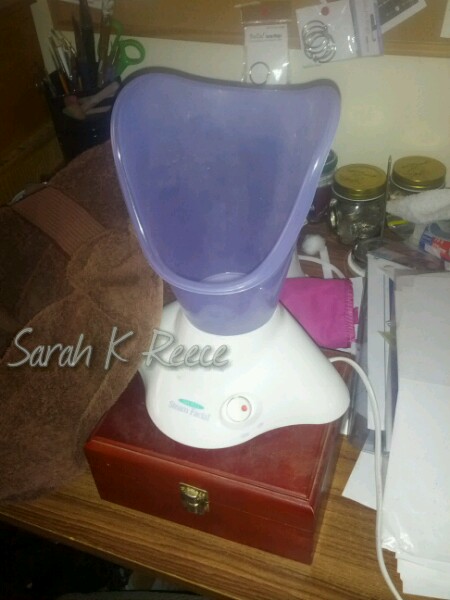 Meet my current best friend. My sinuses seem determined to emphasise the need for the planned surgery by being persistently horrific. If you also suffer with hostile sinuses, I suggest you get one of these. They are only supposed to be a facial steamer, but they work so well to relieve pain and pressure, considerably better than pain killers. I add tea tree and eucalyptus oil to mine, just a couple of drops, and sandwich myself between a soft dry towel and a tissue box. It’s a simple device, it just heats a very small basin of water to steaming point. I much prefer it to the old bowl of hot water and a towel over your head method, because I don’t like lugging kettles or bowls of hot water around the house when I’m feeling horribly unwell and more likely to trip or drop things. I think I paid $10 for this one second hand from eBay.