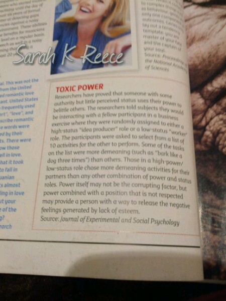 I came across this interesting article in Issue 136 of the Wellbeing magazine (more doctors appointments means catching up on magazines) and for someone who has always unquestioningly believed that power corrupts, absolute power corrupts absolutely, it was thought provoking. The fear of corruption has made it incredibly challenging for me to grasp and exercise my own power in many contexts. My confused take on these ideas has meant that situations look like a choice between hammer and nail, I’ve chosen to be the nail. But many of the people I admire are those who have grasped power and used it to do good things in the world. I’m hoping to be one of them. Perhaps it will not be as destructive to my self as I have feared. Love and dignity and self-respect might change the equations.