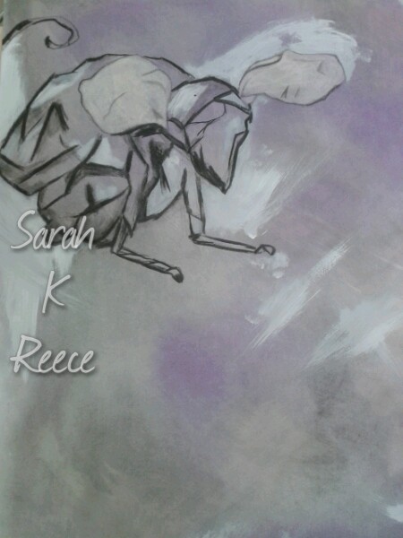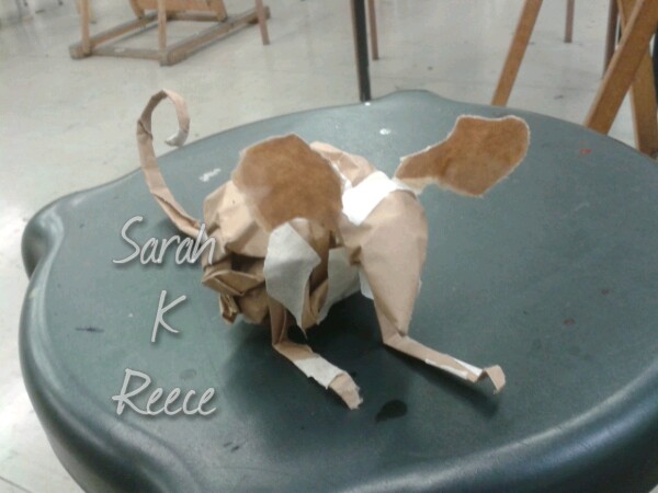 Working on a new drawing in art class, familiar theme, had to make an Australian animal from brown paper, then draw it. We’re working a lot lately with preparing that paper with a ground. (That’s the background, in this case a mix of gesso, willow charcoal, and chalk pastel) I hate blank white paper, as an artist and a writer. Ruining it with random mess means anything I add to it can only be an improvement. That can free up the creative process a little.