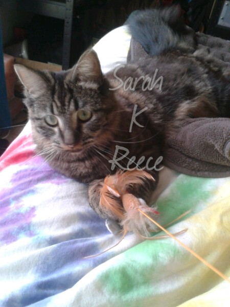 I keep remembering things I meant to do before hand. 😦 I have been feeling a bit better today, and I’ve been able to sweep, mop, clean the bathroom and toilet, and finish some hand made gifts. I started the day playing with Tonks in bed, this is her favourite toy, it’s a tiny turkey on a string. Rose often does this, and it’s a cool idea. Ever since doing some intense processing around attachment, things have improved and I’m connected to and enjoying the company of my pets at last. 🙂