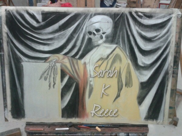 Charcoal and pastel. Haven’t quite finished the jacket yet, I’m always so slow! I’m definitely improving with practice though, this was daunting as hell and it’s not a bad effort for a couple of hour’s work.