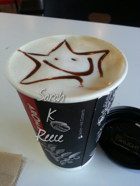 I went and got a very large chai latte. I couldn’t eat much but it got something warm into my gut to ease that sense of churning. The waitress made a star on it which made me smile.