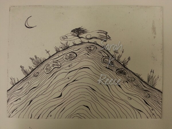 I’ve been working on this in my print making class. The image is part of my series of works about miscarriage and grief. It’s linked to a poem, The Roar, I wrote about losing Tamlorn: