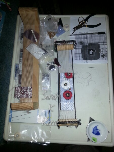 I’m working on these two loom bead projects to help me manage the pain/boredom/frustration of over a week of early labour. The poppy design is a gift for Rose’s birthday coming up, she has a passion for these flowers since they bloomed all through our experience of getting pregnant and losing Tamlorn.