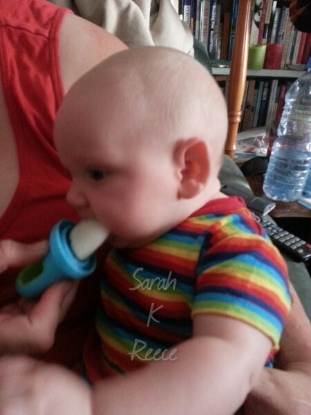 Here is Poppy, enjoying a breastmilk ice block. She’s been teething on and off for a couple of weeks.