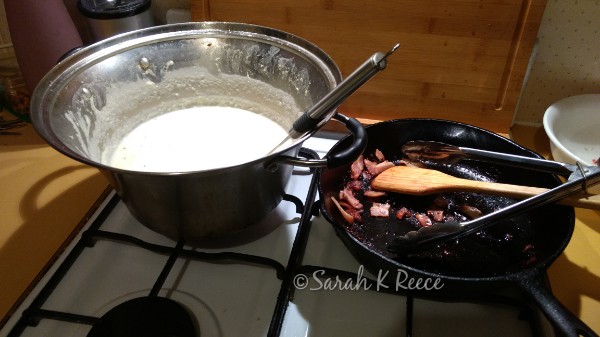 My darling Rose is sick. Tonight we’re tucked up on the couch with cauliflower and bacon soup, watching Harry Potter.
