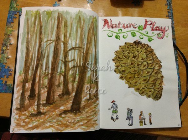 So I had a great time. I brought my travel art kit with me, and was having fun sketching the people and painting the forest with watercolours. While I was playing with it, a small group of kids came over fascinated. I was practising some brush lettering and they asked me to paint their names, and ‘Harry Potter’. Then they practised painting their own names with the brushes. (not shown as it’s their names, obviously)