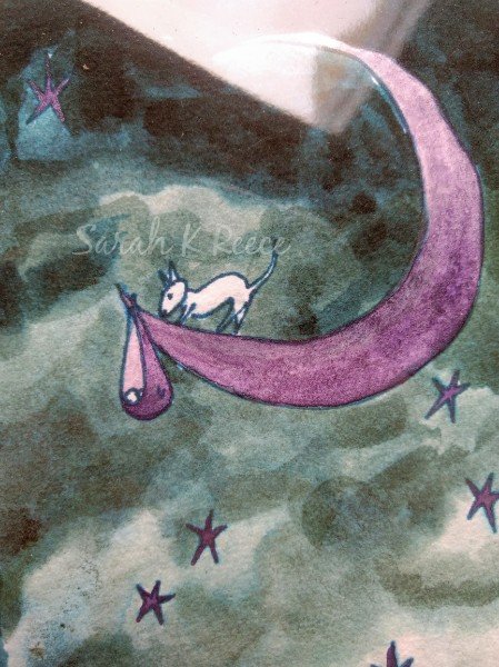 Digital print reproduction of my original ink painting, hand embellished with genuine crushed amethyst. Unframed, packaged with custom cut matting and backing ready for your 8×10 inch frame.