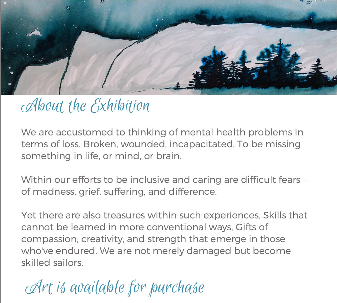 - Artist’s Talk about the art, and my personal experiences of mental health and recovery