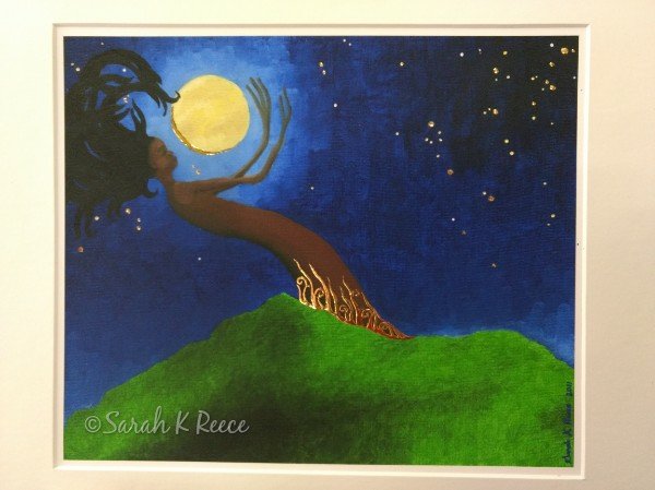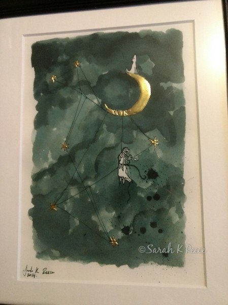 Here’s one of my gilded prints with 24 karat gold on a rounded German size. It’s called Tangled in Dreams, and I sold this one a few days ago.