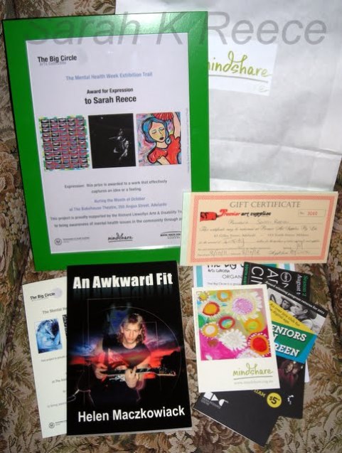 Wow, what an exciting evening! I was presented with an award this evening at the Emerging Artists Big Circle Arts Exhibition! It was for “a work that effectively captures an idea or feeling”, and came with a bag of goodies including a deeply appreciated gift voucher to Premier Art Supplies. That’s going to fill in a few more colours for my paint range and buy some new paper. 🙂 Here she is: Homelessness.