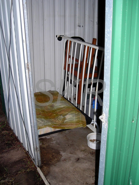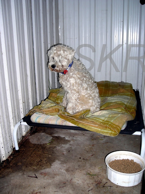 I’ve also used my trundle bed base to block off most of the shed so he can only walk in the door to his bed and food bowl. This means a lot less space for him to get lost in, it’s been a lot easier for him to find his way from the bed to the door, but he’s still tucked safely out of the weather.