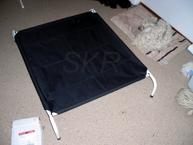 So, recently when the weather started getting wetter I bought him a lovely raised dog bed.