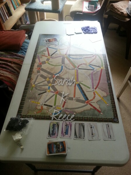 Rose and I are pacing ourselves through all the stress with good distractions. A couple of wonderful people have made donations through this blog recently, and we went out and bought this very cool game. To mark the official first day of living together, we stayed up very late playing it. We’ve since taken it with us around to several friends and family to introduce them to it.