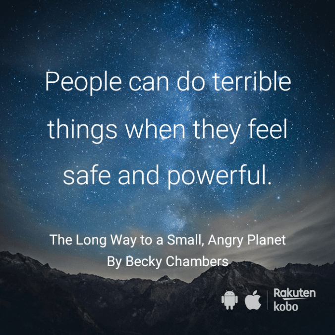 I adore Becky Chambers. Finding a new author to crush on is the absolute highlight of my month. I’ve just read this beautiful book for the second time and am loving the kobo quote tools. https://www.kobo.com/AU/en/ebook/the-long-way-to-a-small-angry-planet-1?utm_campaign=PhotoQuotesAdr&utm_medium=Social&utm_source=App_Acq