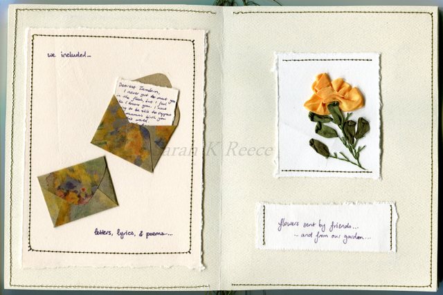 Handmade books are, for me, taking the zine into another space. Where the zine is cheaply reproduced, rough, raw, punk, DIY, uninhibited, the hand made book is more considered. It’s the zine, polished. My handmade books are text and image, the place where my passion for both combines. They are days spent painting or embroidering a single page.