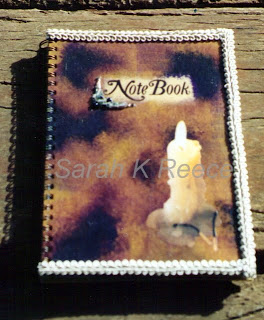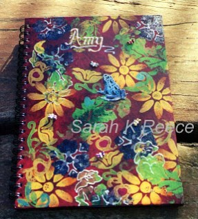 Journal stamped and painted with fabric paint, frog cut from a magazine |